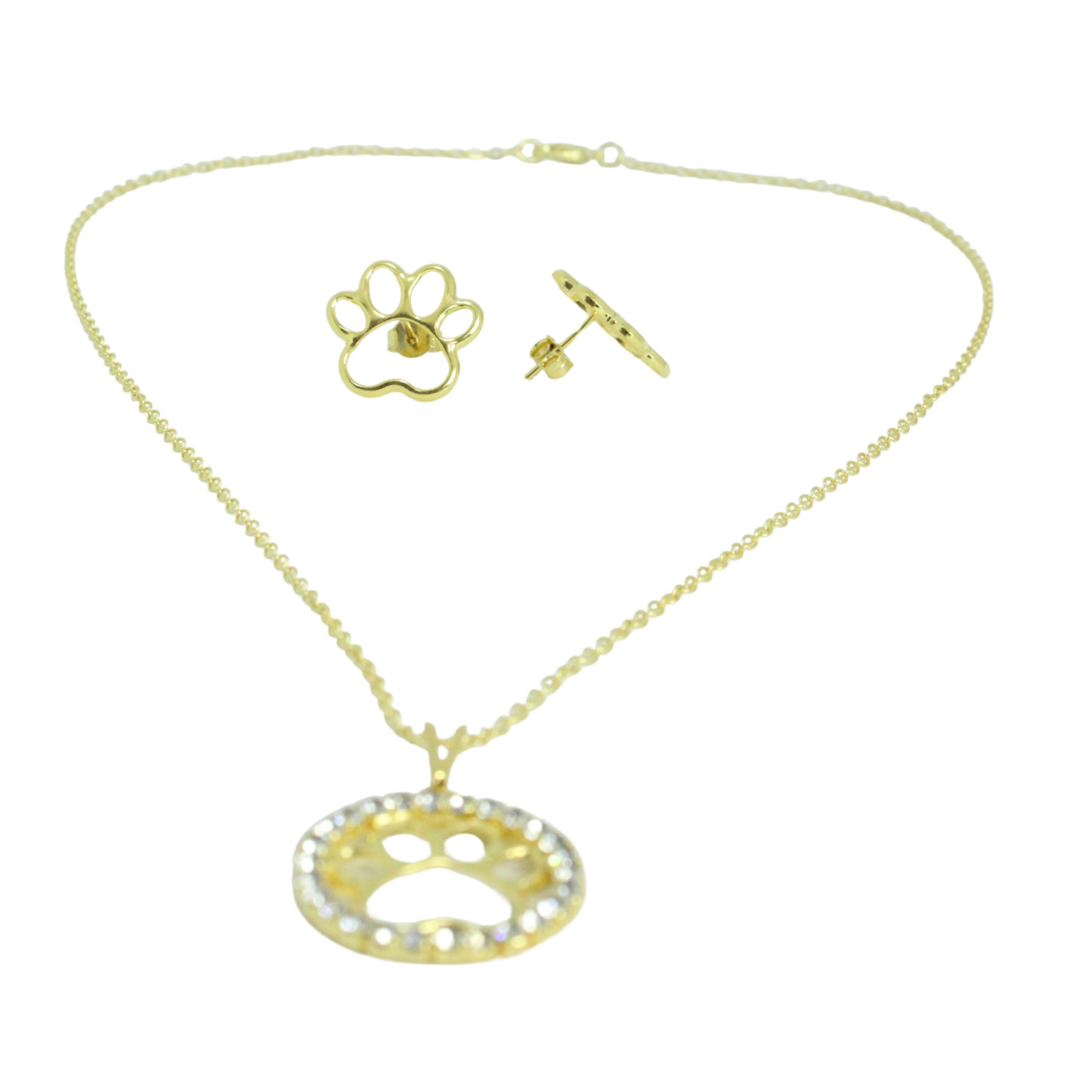 O Conjunto de Colar e Brincos com Patinhas Grandes Folheado Dourado foi criado para quem não esconde o quanto ama seu pet.